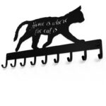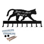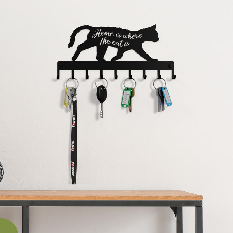 Nigdy więcej nie zgubisz klucza dzięki tej stylowej tablicy na klucze „Home is where the cat is”. Zamontowana na ścianie, pozwala łatwo znaleźć klucze i przechowywać je na odpowiednich haczykach.